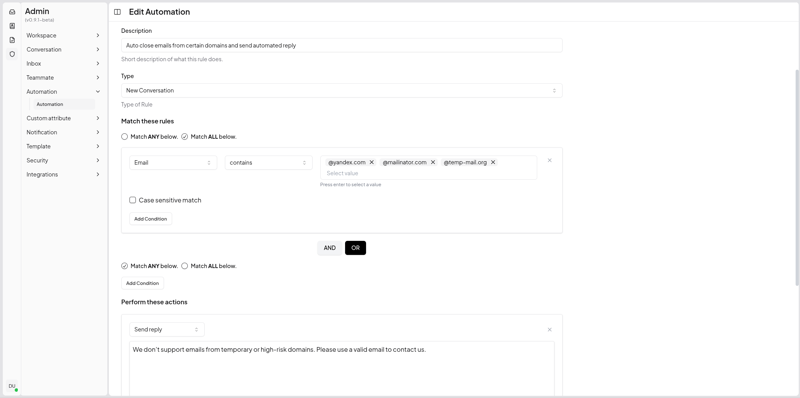 Eliminate repetitive tasks with powerful automation rules. Auto-tag, assign, and route conversations based on custom conditions.