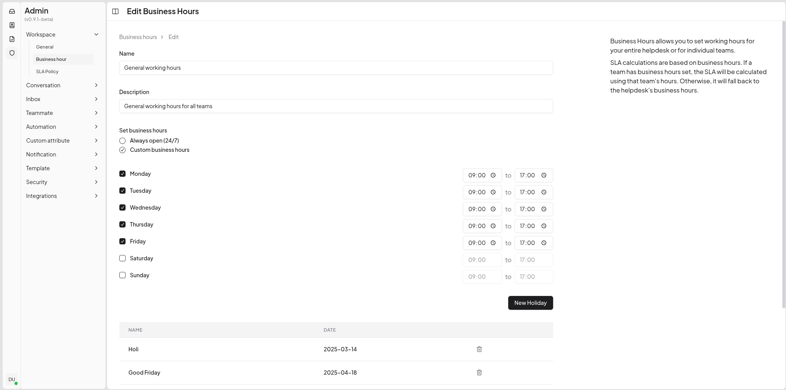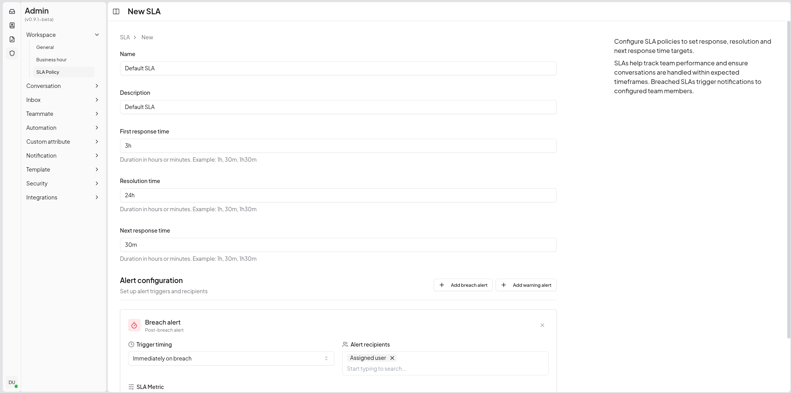 Set and track response time targets. Get notified when conversations are at risk of breaching SLA commitments.