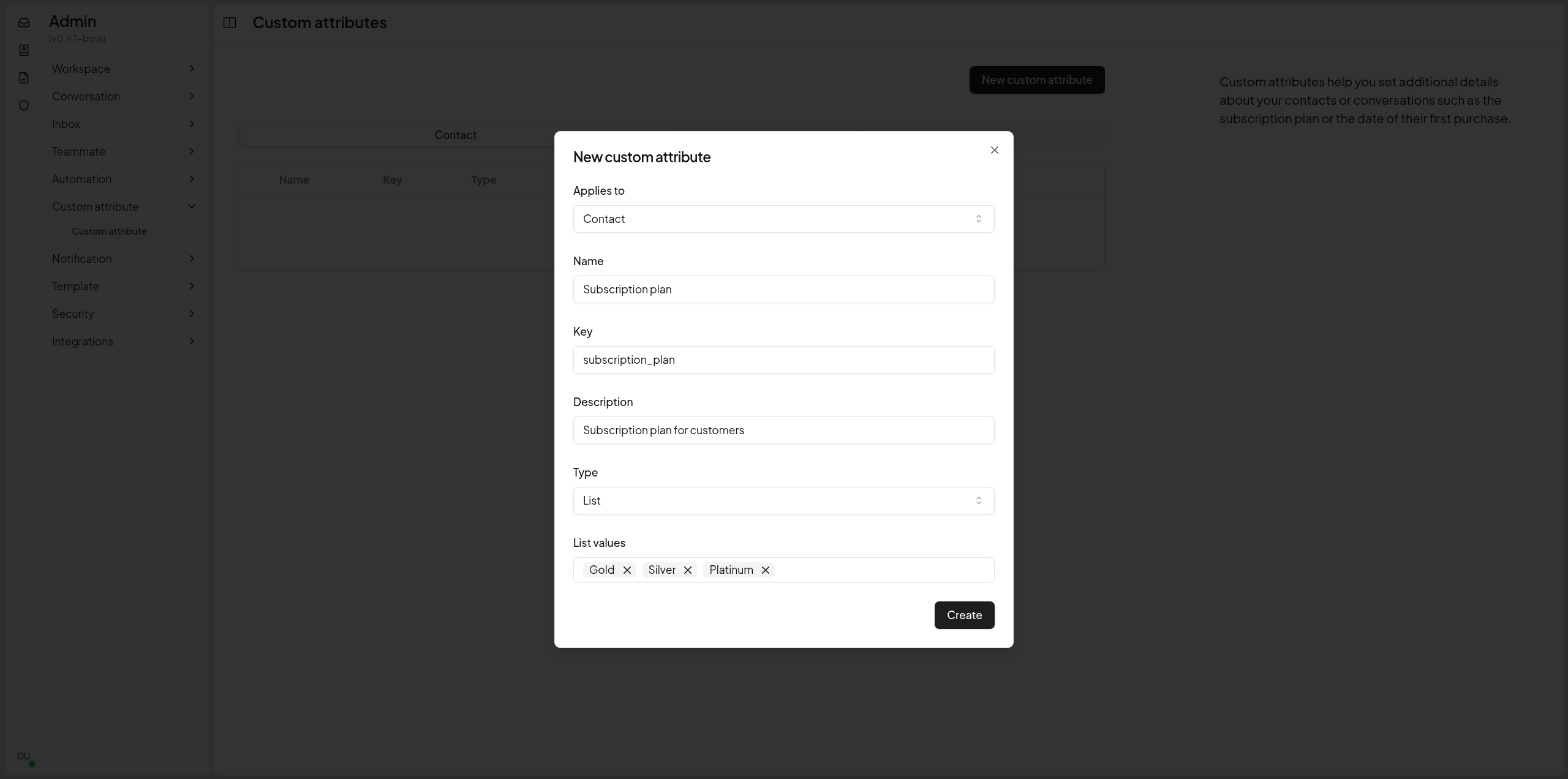 Create custom attributes for contacts or conversations such as the subscription plan or the date of their first purchase.