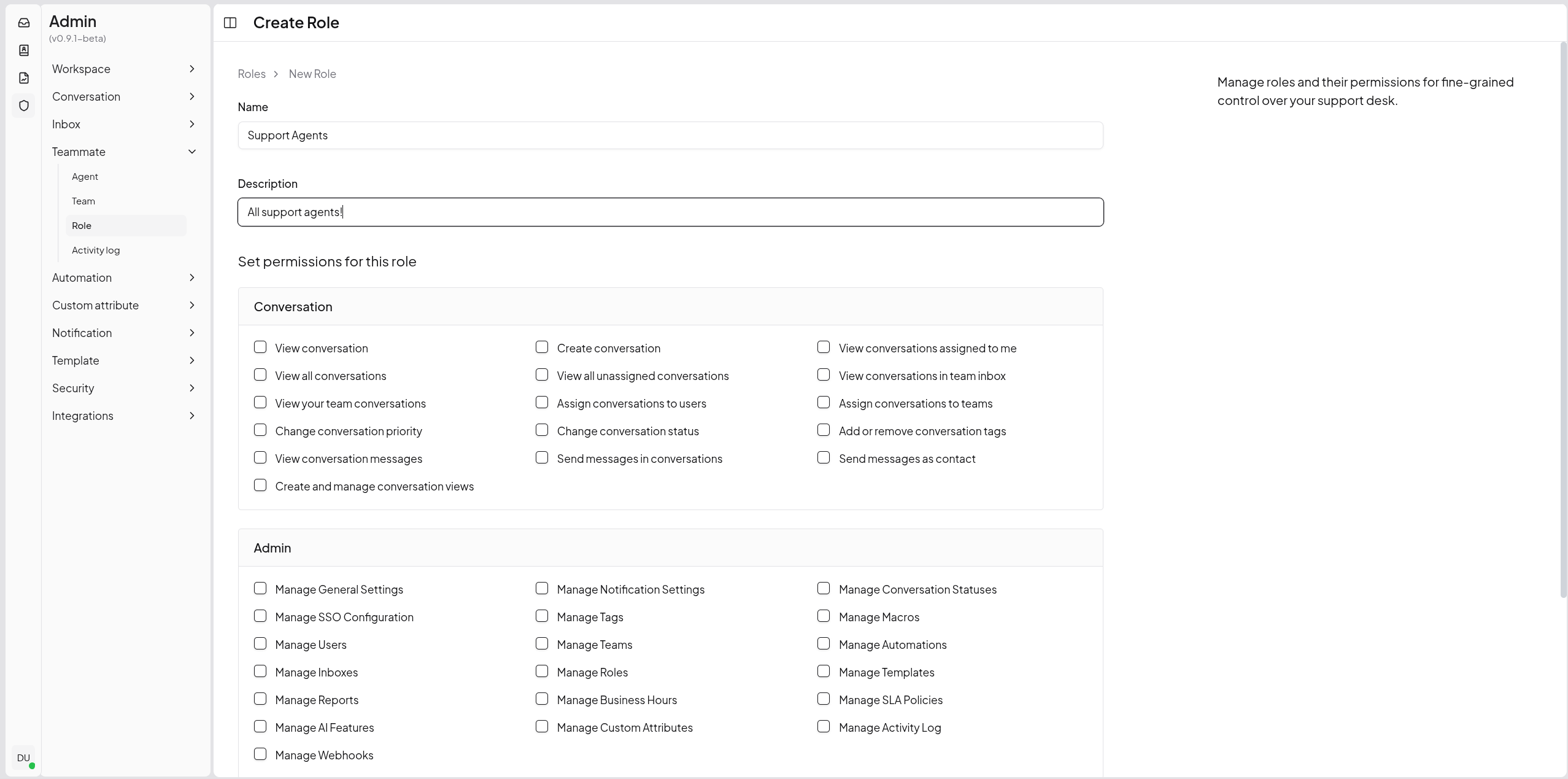 Take full control with role-based access. Create custom roles with granular permissions for teams and individual agents.